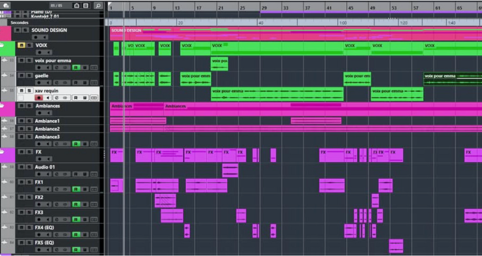 Pour le soundesign, Emma a collaboré avec Louis LECHNER. Ensemble, ils ont divisé le court-métrage en trois parties :